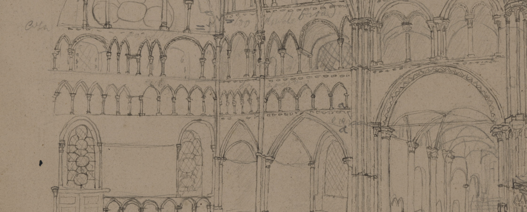 Anonymous. Northeast Transept of Canterbury Cathedral (recto); Architectural Details (verso), ca. 1800. The Metropolitan Museum of Art